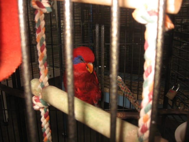 Des son premier jour, elle à coller Ti coeur mais s'entend bien avec les autres loulous. Son nouveau jeu est d'attraper les plumes des autres oiseaux Suspect