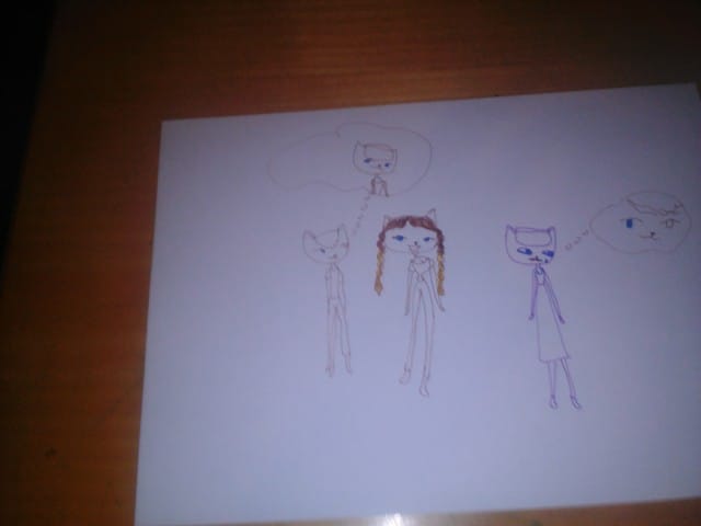 Maintenant, je recommence a dessinée "Pauline et Cie", d’ailleurs en voici quelques dessins: (Oui, ce sont des chats-humains et des chien-humains)