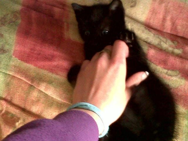 En troisième le plus vieux mais pas le plus docile Blacko, âgé de presque 3 ans mais le plus âgé de 2 semaines est le tout premier de nos bébés que nous ayons eu à la maison, d'ou son incroyable jalousie vis à vis de tout le monde à mon égard. Il préfère rester seul dans son coin et il est le seul à décidé de quand il veux un câlin. Il n'en est pas méchant pour autant car Mr. ne grogne plus qu'il attaque.
