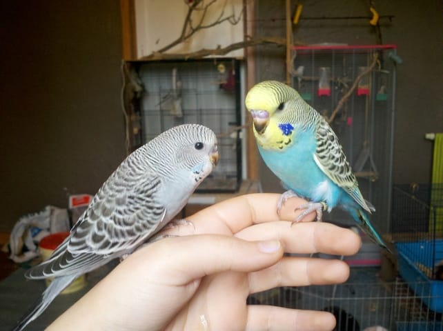 - Mon premier couple ce compose de Furie, femelle anglaise*, mutation albinos de 1 an et demi, et de Coockie, mâle ondulée, mutation Vert olive/ bleu cobalt masque jaune type 2 de 1 an et demi également.