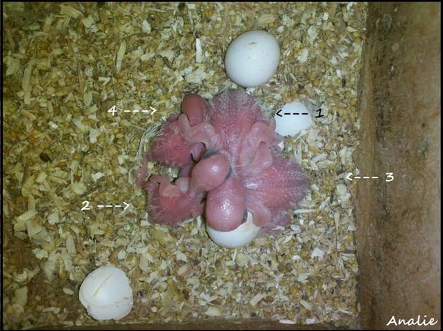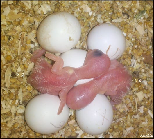 Il y a quelque jours, je les est mirer (regarder avec une lampe l’intérieur de l’œuf), et j'ai pu voir que 5 d'entre eux était fécondé donc 3 bientôt à terme. Les deux autres sont trop ressent pour pouvoir y voir quoi que ce soit. Il faut attendre environ 1 semaine.