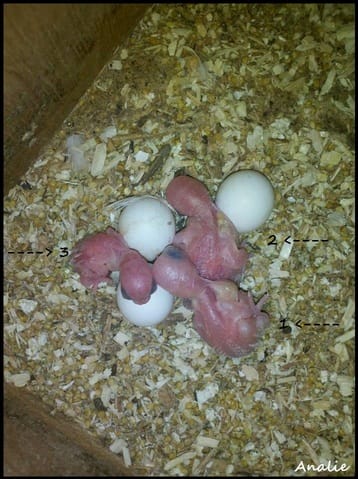 Il y a maintenant 13 jours, Furie a pondu son premier œuf (30/10/14), et tout les 2 jours 1 autre. Elle en est a son 7ème actuellement et il y en aura peut être un autre demain. A moins qu'elle est fini (ce qui serais pas mal pour une première couvée :p ).