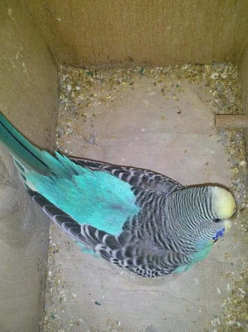 - Mon premier couple ce compose de Furie, femelle anglaise*, mutation albinos de 1 an et demi, et de Coockie, mâle ondulée, mutation Vert olive/ bleu cobalt masque jaune type 2 de 1 an et demi également.