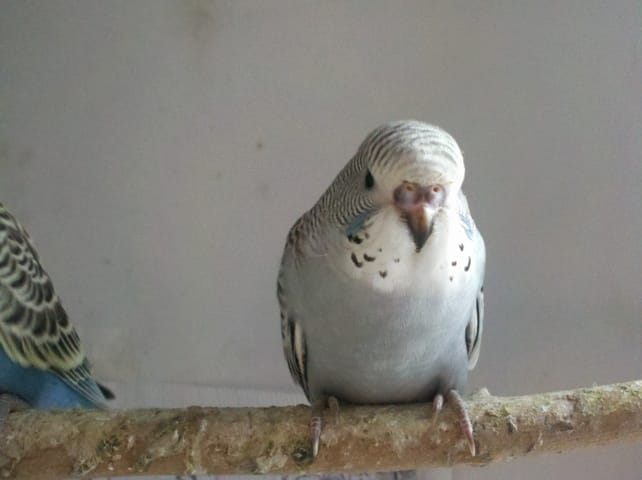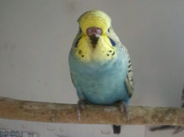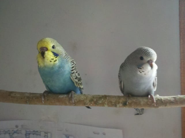 - Mon premier couple ce compose de Furie, femelle anglaise*, mutation albinos de 1 an et demi, et de Coockie, mâle ondulée, mutation Vert olive/ bleu cobalt masque jaune type 2 de 1 an et demi également.