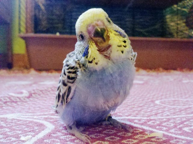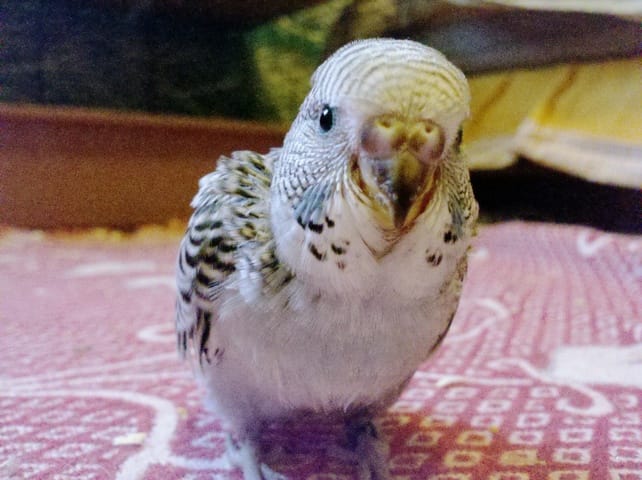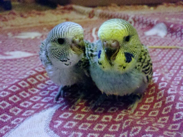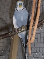 - Mon premier couple ce compose de Furie, femelle anglaise*, mutation albinos de 1 an et demi, et de Coockie, mâle ondulée, mutation Vert olive/ bleu cobalt masque jaune type 2 de 1 an et demi également.