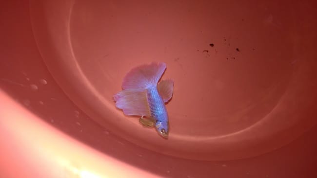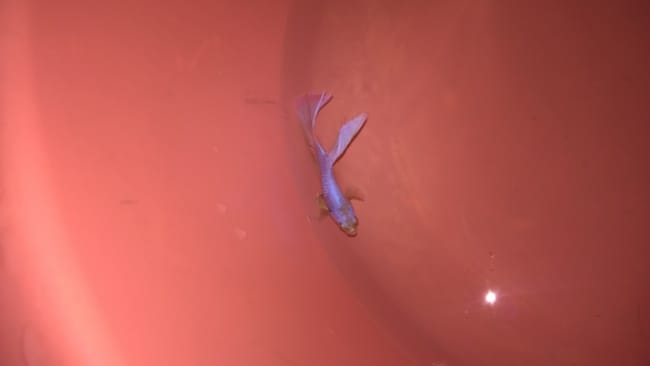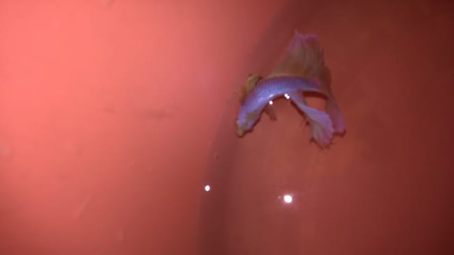 Ca y est ! j'ai mon Betta half moon de couleur violet/bleu pâle et un peu d'orange sur les nageoires ,mais il nage presque correctement à chaque fois qu'il nage plus il est sur le coté ! croyer vous que c'est à cause de sa grande queue qui est trop lourde pour lui ? 🤷 ce soir , quand il sera dans son aquarium , j'essaierai de le faire parader