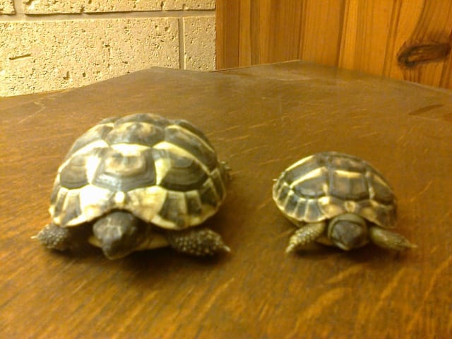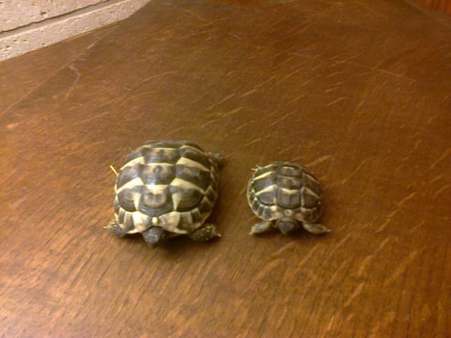 Trop mimi tes tortues (surtout celle de droite). Tu nous diras quand tu sauras leur sexe et j'aimerais bien savoir leur âge aussi🙂