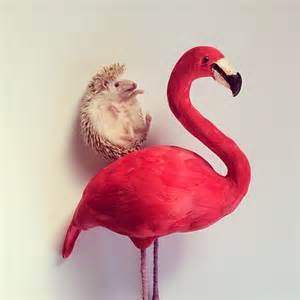 Connaissez- vous Darcy celui qui fait fureur sur intagram c'est un petit hérisson et on le prend en photo avec des objets comme la il est sur un flamant rose mais en plastique !(ihihihi)