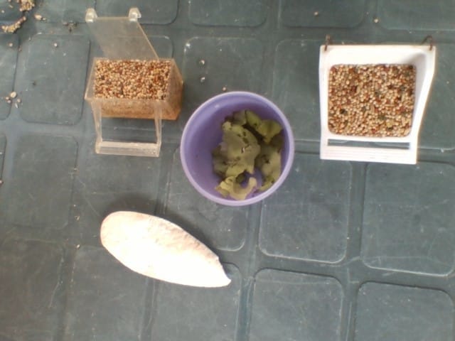 pour la salade, ça va. Surtout qu'il ne faut le laisser qu'une journée pour ne pas qu'elle pourrisse et rende malade ton oiseau. Fait attention qu'elle n'en mange pas trop, sinon enlève-en