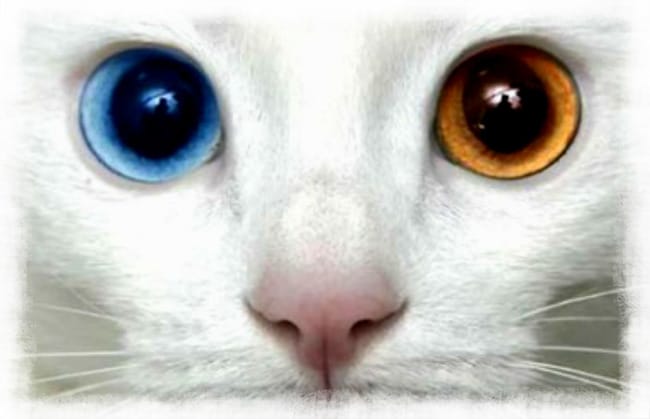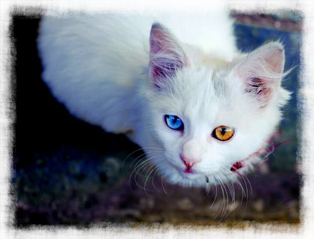 Description : Grand chat blanc aux yeux vairon.