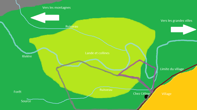 Pour faire un peu plus petit que le territoire de Beal, celui de Nala peut se situer entre le ruisseau et la rivière...