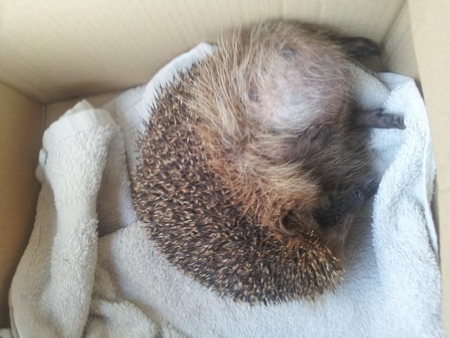 Ce matin en promenant ma chienne on a trouvé un hérisson au bord de la route.