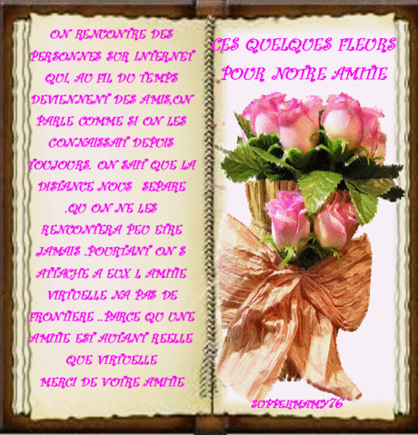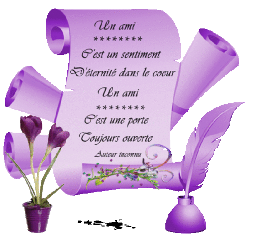 😉 Bonjour les filles je vois que le concours des plus belles citations de l'amitié a prie un super chemin même celle qui n'aimes pas les gif viennent en poster c'est super çà , Tania merci d'y mettre ton message et t'inquiète pas on est pas contagieuse , ni malade on est juste une bande d'amies qui s'apprécies tel qu'on est chacune , on ne demande a personne de changer juste d'être ceux qu'elle sait bien faire : "" une amie sincére"" ..