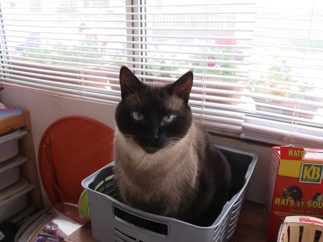 Cali était resté aussi toute la journée chez le véto. Quand on l'a récupéré, il était encore un peu groggy. Il était tout mou. Je me faisais du soucis. Le véto nous avait recommandé de le mettre dans une pièce un peu sombre car ses pupilles étaient encore bien dilatées. Et surtout, il ne fallait pas qu'il regarde la télé. Lumière trop violente.