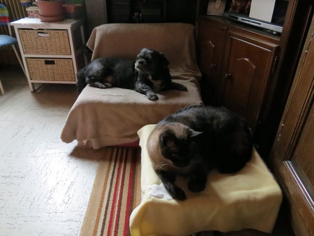 😉 Coucou Usibelle ils sont magnifiques tous ensemble ta tribu est bien belle , bin oui je penses qu'ils ressente tous qu'ils se passent quelques choses et pour Rescues bin c'est pas drôle mais il faut passer par là pour éviter une plus grande famille , je connais çà mes chattes sont toutes passer par là et Tayzon aussi mais lui avec des complications il avait arracher dans la nuit son pansements donc 2 heures du matin au urgence vétérinaire franchement pas drôle mais il avait fait une hémorragie en tirant sur ces fils on en l'a pas assez surveiller heureusement tout c'est bien terminer mon fils s'en ai rendu malade ce jour là de pas l'avoir veiller assez longtemps ,moi non plus j'ai plus de chauffage mais bon on es habituer car chez nous même l'hivers s'a chauffe pas terrible on peut gueuler où faire des pétitions çà change pas grand chose alors chauffage d'appoint pour être bien .bon courage pour ta balade au véto oui je sais tu aimerais une autre balade mauvais jeu de mots , bon courage et bonne journée bizoux à Rescues .