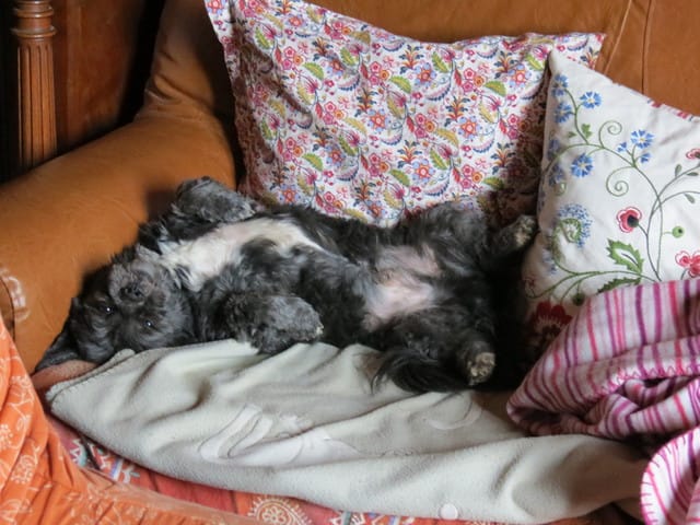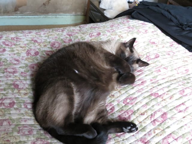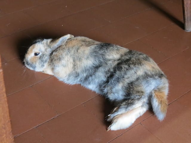 Je suis un peu en retard ce matin. Je n'avais pas envie de venir travailler. Je serai bien restée au frais à la maison. Tout le monde à la maison était encore couché. Le chien au frais dans la salle de bain, le chat étalé de tout son long sur la table et le lapin, la même position que Cali mais sur le carrelage.