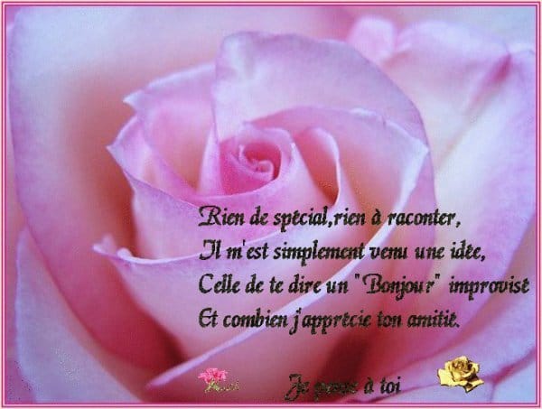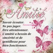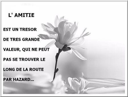 oui Mincat ta phrase de l' amit!é est très juste: pour moi l' amitié est un partage, une communication simple, des échanges honnêtes et sincères. L'amitié est rare car il faut savoir écouter les autres et ne pas oublier leurs noms! les affinités sont un luxe et la confiance un don, un jardin à cultiver sans restriction!