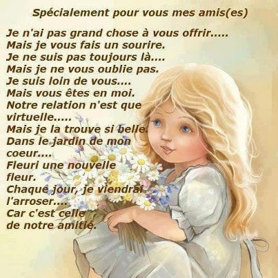 Tania tu dis que les amies on peut les compter sur les doigts de la main , et oui je suis d'accord avec toi les vrai de vrai mais on peut aussi avoir beaucoup d'amie et amis différents qu'on peut connaître tout au long du chemin de la vie et qui sont aussi sincère faut pas compter faut juste être là pour chacun d'eux savoir écouter leur différences et savoir faire là part des choses .C'est pour cela que je prends un plaisir à vous mettre mes amies chacune un message et des gifs différents car vous êtes toutes unique à mes yeux et vos centres d’intérêt sont différents c'est çà une amie qui fait attention aux différences sans cesser d'être une amie et qui sera trouver la bonne phrase où la bonne photo quoiqu'on en dise pour moi : """ je suis comme çà "".