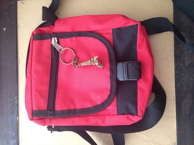 Je vend avec une petite sacoche oú l'on peut ranger les friandises de son chien oú de son chat :