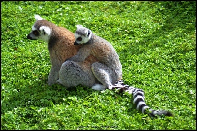 vous voyez un petit et sa maman, et regardez la queue de la maman, bien courte, j'ai demandé pourquoi. Réponse de la soigneuse ; il est supposé que des personnes ont touché sa queue, et que l'animal n'a pas supporté l'odeur de l'humain. S'en est avérée une plaie suite au léchage abondant ; puis une nécrose.