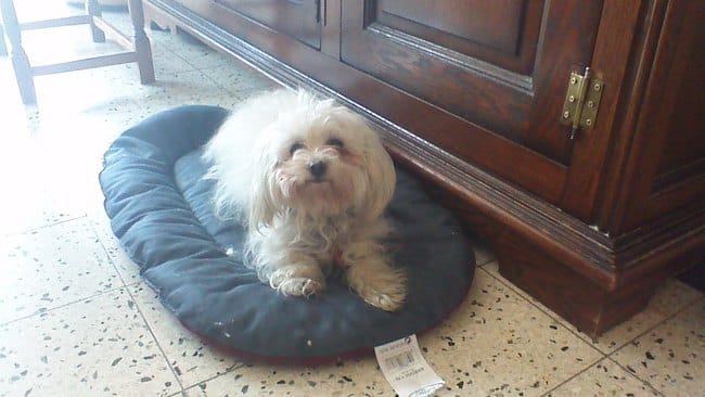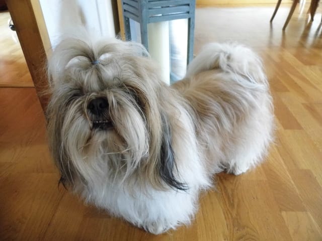 Elle va passer par la case toilettage ce mercredi car elle a des noeuds horribles et cet espèce de masque brun autour des yeux depuis qu'on nous l'a donné.