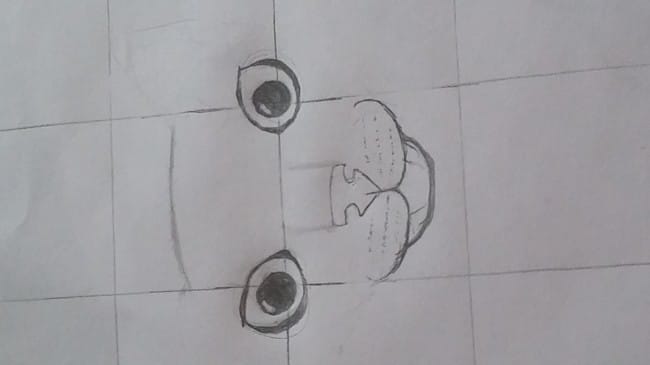 Là, j'ai commencer un dessin de chat de ma tête sur quadrillage. Très simple. Je viens de finir le visage.