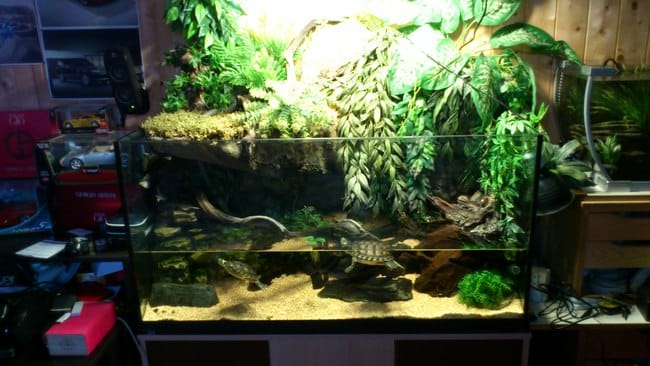 Mwa je n'en possède pas, mais mon copain à un terrarium avec deux tortues d'eau, et du coup je commence a bien m'y connaitre dans le sujet.