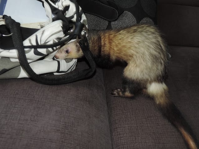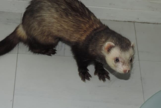 Mon mari et moi-même venons d'accueillir un furet que l'on a trouvé dehors. Après une visite chez le vétérinaire, il s'avère qu'il s'agit d'un jeune adulte, mâle, non pucé. Nous avons rendez vous prochainement pour des vaccins et une castration.