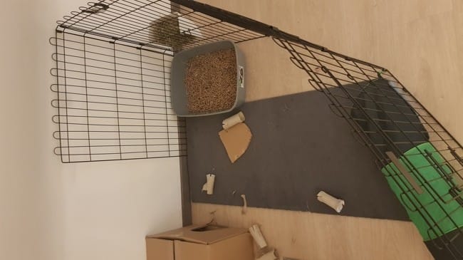 C'est déjà super d'avoir pensé à l'enclos pour ce petit lapinou qui sera bien mieux qu'une cage qui n'est pas du tout adaptée. Et aussi génial de l'avoir récupéré