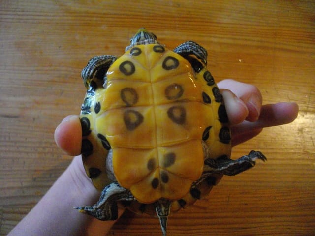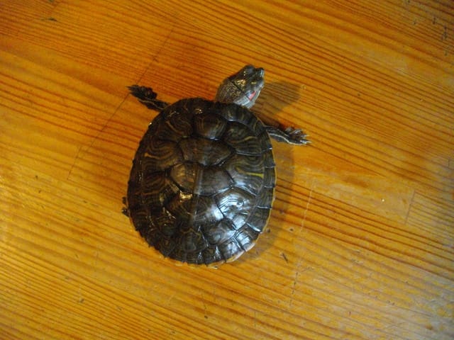 Normalement, si son ventre, le dessous de sa carapace est plat.
