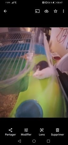Je souhaiterais avoir des conseil concernant ma souris.. Nous avions 2 belles souris, Bali et Nikita. Cette nuit Nikita nous a quitté suite à une tumeur.. C'était la plus câline et la plus gentille de toute les souris que j'ai eu... Bali est une souris très active et très maternelle, elle ne tient pas en place. Depuis que Nikita nous a quitté elle ne met plus le nez dehors, elle s'isole. C'est pourquoi je pense lui prendre une nouvelle compagne, car sa vie est encore longue et je ne veux pas qu'elle se laisse mourir. J'ai également besoin de conseils concernant l'éducation de mes souris. Avec le recul je pense que je nai pas fait ce qu'il faut pour leur bien être. Ayant 3 chats, je ne sors jamais mes souris de leur cage. Avec le recul j'ai l'impression que c'est de la maltraitance. Ce n'était pas volontaire, je me suis renseignée trop tard sur les choses à mettre en place pour le bonheur de mes bb. En toute franchise j'aimerais que quelqu'un me donne des conseils sur la chose a faire. J'ai deux cages, une pour jouer l'autre pour dormir, équipée d'une roue. Mais Bali, contrairement à Nikita est réticente à grimper dans ma main. Est ce un problème de confiance ? Ou peux 3tre qu'elle estime que je n'ai pas fais ce qu'il fallait.
