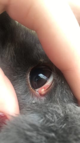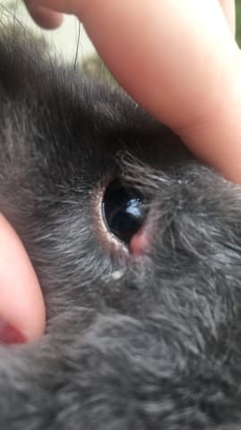 Ma lapine âgée de 4 ans, à un bouton blanc sous sa paupière gauche, le reste est anormalement rouge, donc ça à l'air très héritée, elle n'aime pas quand je lui touche, alors que l'autre œil, qui n'a rien, lui est égal.