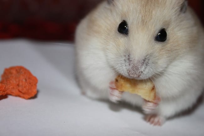 Voila mon Hamster " Skittles" qui mange un morceaux de banane =)