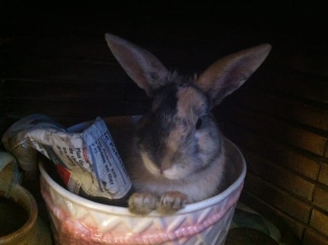 Moustache , lapin angora .