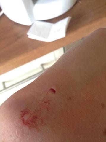 Et oui.. on remercie mon manque d'intelligence : j'ai eu la bonne idée, lors de leur grosse dispute, d'essayer de les séparés. Pile s'est retourné contre moi, croyant que c'était Zumba, et clac. J'ai souffert, je peux vous le dire lol
