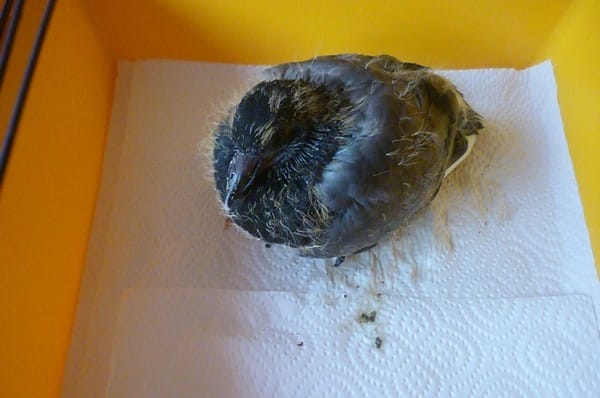 Je ne sais pas si il va passer la nuit, il n'a pas l'aire en bon état, il a plein de petits poux ou petites bêtes donc il est dehors dans une cage à souris ... Heureusement qu'il est petit donc il est bien dedans.