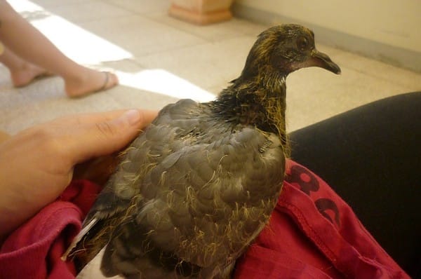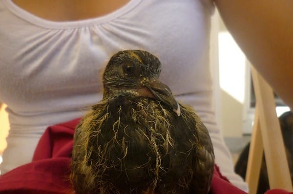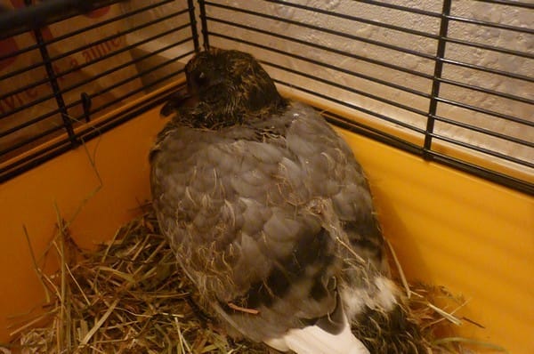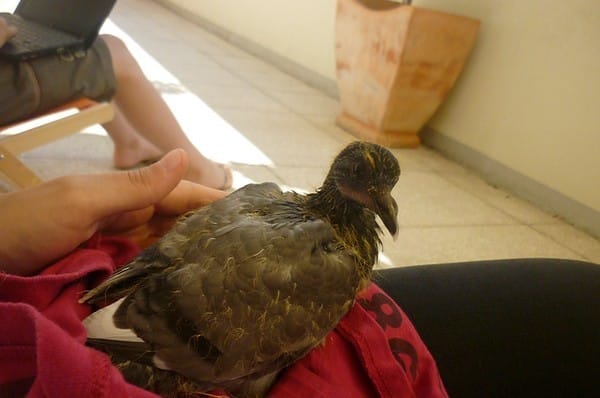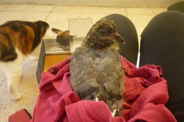Derriere un tuyau sous un pont un bébé pigeon !!!