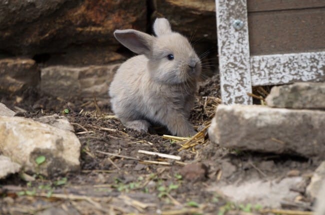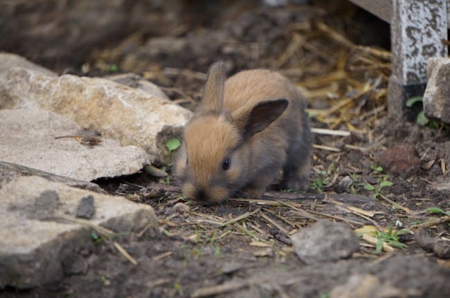 Hier alors que nous étions à côté de l’enclos de nos lapins nous avons eu la surprise de voir sortir une portée de lapereaux.