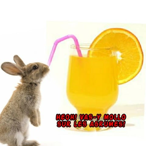 Alors franchement, a moins qu'il soit prouvé que les oranges et feuilles de vignes font partie du régime alimentaire classique du lapin, ce serait plus prudent de cesser les expériences.