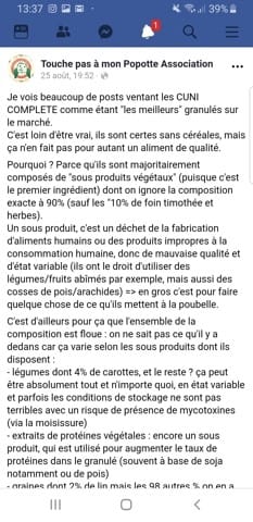 Majoritairement composé de, je cite, "sous produits d'origine végétale", donc des déchets végétaux, de la paille, etc... La qualité de ce produit a largmenent baissée depuis quelques années.