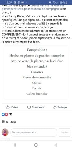 Super ! La marque est trouvable sur le site zooplus, on ne peut les commander que sur internet ils ne font pas cette marque en animalerie. C'est bunny rêve young pour les lapins de moins de 6 mois et bunny rêve basic pour les plus de 6 mois.