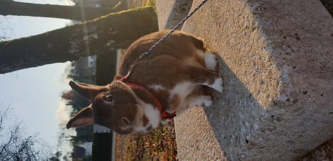 Mes lapins je les aient tous sortie et pas de manque de l'extérieur . Calypso adorait sortir et pas question de rester dans mes bras, elle adorait courir avec deux harnais sur elle . Pas envie de la perdre .