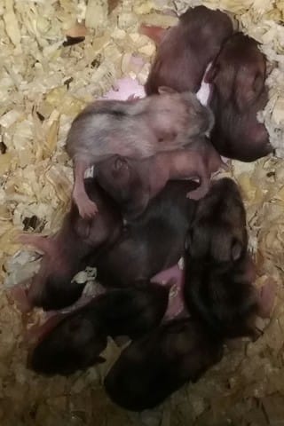 - malheureusement il me reste que ma femelle foncé , je vous explique mes les deux femelle on accoucher avec un jour d écart, au bout de trois jours ma femelle blanche est décédé , je ne savais donc pas quoi faire avec mes 6 jeunes qu'elle ma fait donc j ai pris le risque de les metre avec mon autre femelle qui venez tous jours de faire ces 7 jours et par miracle elle s occupe des 13 jeunes et tous vas super bien pour elle et les jeunes il ont mtn 10jours , et miracle mon mal s occuper des jeunes avec ma femelle ..