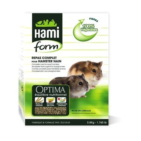 Que tu trouve facilement en animalerie, tu as la marque HamiForm, la marque Versele Laga (tu trouveras des granulés et des mélanges), et la marque Rongis.
