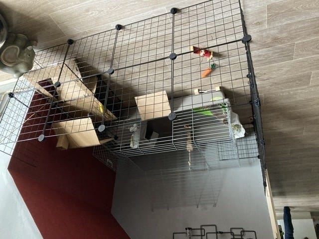 Je ferai juste attention pour plus tard qu'elle ne puisse pas monter sur le toit de la cage. Le lapin de ma collègue s'est coincé la patte il a une triple fracture. Plusieurs semaines avec une attelle et 60euro de veteeinaire