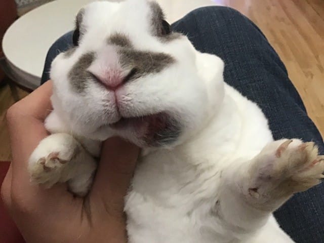Voici mon problème: depuis quelque temps, mon lapin a une étrange boule qui se forme sous son cou. Chaque fois que j’y touche, il détourne la tête et me fait comprendre qu’il n’aime pas ça. Je m’inquiète un peu. J’ai demandé conseil à des amis. L’un pense que c’est une boule de poils qui est restée prise dans sa bouche, l’autre pense que c’est tout simplement que mon lapin grossit.