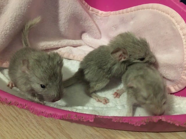 Bonjour à tous! J'ai 2 chinchillas, un mâle Willy Wonka et une femelle Sweeney T, suite à un malentendu Sweeney s'est retrouvée enceinte et ils viennent d'avoir 3 bébés! Tout le monde va bien je suis très contente!!! Ma question est :