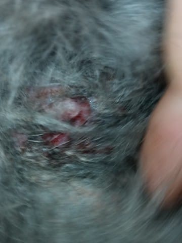 Sans connaitre l'aspect des lésions, leur taille, leur localisation, il est très difficile de vous donner un avis objectif. La meilleure chose à faire est de consulter un vétérinaire qui pourra déterminer si les lésions observées sont d'origine inflammatoire, infectieuse, bactérienne, parasitaire...