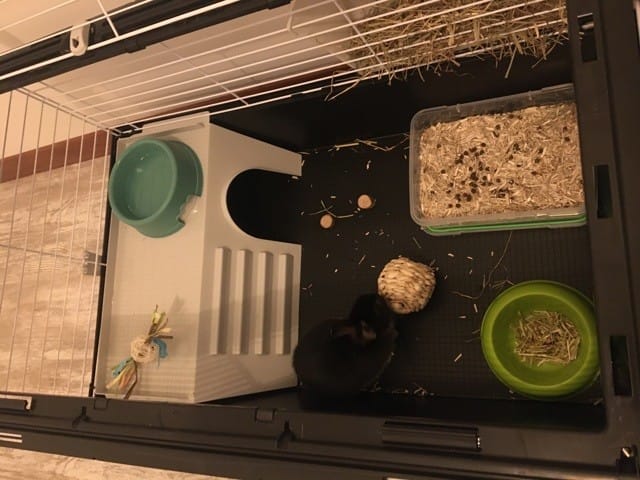 Et maintenant, comme vous avez pu le voir dans mon article sur les cages, ma lapine est en liberté totale avec un espace à elle dans le salon. Elle est totalement propre, on n'a aucun accident, elle ne fait ses besoins que dans litière.