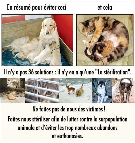 cela devient pénible à chaque fois qu'on parle de faire une saillie pour un chien ou autre d'entendre dire qu'il faut pas parce que..... ce n'est pas nous qui abandonnons, faut responsabilisés les gens qui prennent des animaux et s'en débarrassent après, heureusement on n'est pas tous comme ça